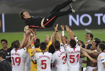 El preparador de Asteasu llegó al Sevilla el pasado mes de junio de 2019, con el objetivo de regresar a Liga de Campeones. Lo logró en su primera temporada además del título europeo, eliminando en las fases finales a equipos de la talla de Roma, Manchester o Inter. Sus números hablan de 54 partidos, con un balance de 34 victorias, 15 empates y solo 8 derrotas, para una media de 1,85 puntos por partido, lo que en una temporada de 38 partidos haría que el equipo se fuese hasta los 70 puntos, los que le permitieron al conjunto nervionense regresar a la máxima competición europea a nivel de clubes la pasada campaña.