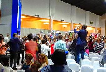 Los delegados de las organizaciones oficialistas cubanas corearon diversos lemas contra los disidentes, como “que los saquen” o “abajo la gusanera”.