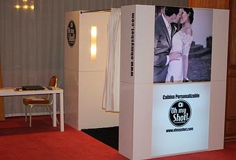 The components of this cabin of minimalist estheticguarantee the quality of the photographs. Its Reflex camera can capture high-resolution images and its thermal print system, that prints 2x3 images strips – with personalized logo – in 20 seconds, avoid long waiting times for guests.