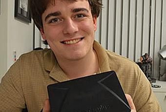 Palmer Luckey muestra contento el Oculus Rift: su invento le ha reportado 2.000 millones de Dólares. (Fuente: www.oculusrift.com)