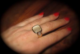 Como veis es un anilo dorado con piedra de ojo de gato blanco.