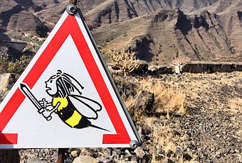 Corresponde a un rincón de la isla canaria de La Gomera e indica, por cuanto puede deducirse sin gran dificultad, que la zona en la que nos encontramos presenta una población de avispas/abejas lo suficientemente importante como para andarse con cuidado, sobre todo aquellos que pudieran tener una alergia importante a la picadura de heminópteros (se estima una mortalidad del 0,4 por cada millón de habitantes y año; según esto, en España podrían morir unas 20 personas al año por este accidente).