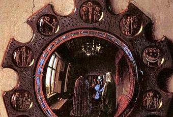 Jan van Eyck: Retrato de Giovanni Arnolfini y su esposa (detalle), 1434.
