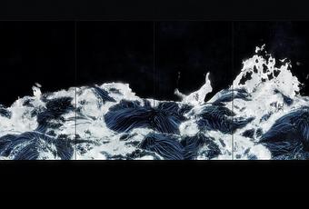Flutter Batterflies, born from handsA lo largo de todas las paredes de la enorme sala, continuaba el incesante moverse de una enorme masa de agua negra y de espuma blanca (Black Waves: lost, inmersed and reborn) que, gracias también a algunos espejos presentes en puntos estratégicos, hacía sentir al espectador inmergido en un océano infinito de agua, de espuma, de ritmo y de belleza, sintiéndose como parte de él, una partícula más que se mueve e interactúa con lo que se está viviendo. La cosa sorprendente, por lo menos para mí que soy informático de formación, es ver cómo está perfectamente resuelto el complicadísimo tema de hacer interactuar armónicamente y coherentemente las masas de aguas que se chocan; habrá miles y miles de combinaciones diferentes en estos choque pero en ninguno de los casos que he presenciado allí, ha habido un resultado no-armónico de estos choques. ¡Una pasada! Para quien tiene la curiosidad de conocer un poco más la filosofía de team LAB, vea este vídeo.