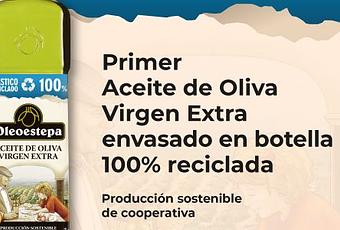 Primera empresa en envasar aceite de oliva virgen extra en una botella R-PET 100%. Esta cooperativa también fue pionera en la implantación de técnicas productivas sostenibles con el medioambiente. El lanzamiento de esta nueva botella es el resultado de la apuesta decidida por la innovación de la cooperativa Oleoestepa desde sus inicios