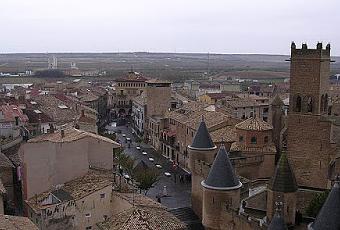 Imagen: «Vista general Olite» de Willtron y portada de la Iglesia de Santa María la Real, de Diego Delso. Disponible bajo la licencia CC BY-SA 4.0 vía Wikimedia Commons.