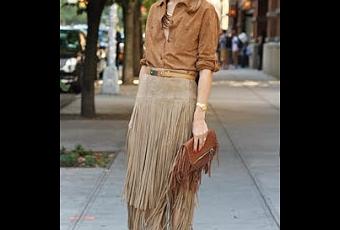 La semana pasada pudimos ver a Blanca Suárez con un look muy parecido, falda de flecos, camisa e incluso los mismos zapatos pero en otro color.
