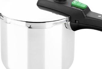 - Práctico tamaño con capacidad para 4 litros; Mide 22 cm de diámetro; Válvula con indicador de la presión para una apertura segura