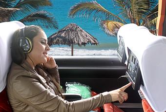 Desde que el bus arranca disfrutarán el verdadero de entretenimiento a bordo de Oltursa, pues podrán desde un panel interactivo táctil y personal elegir más de 100 películas de diferentes géneros.