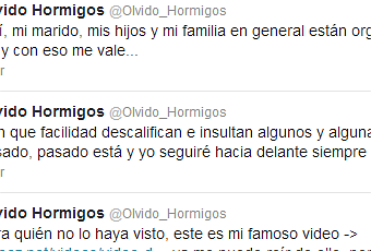 Por cierto, no tiene desperdicio la evolución de los últimos tweets de la Hormigos. Se ve que poco a poco se ha ido creciendo y ha decidido apretar vía Twitter su intervención estelar en Interviu. Juzgarlo por vosotros mismos