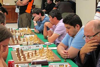 Intensa cuarta ronda en los salones del Hotel Blanca de Navarra, donde una buena parte de las partidas relevantes para el triunfo final se dilucidaron contando sólo con los treinta segundos añadidos de cada jugada. El ritmo de juego de 90+30 quizá no sea el que propicie partidas de más calidad técnica, pero sí les da un toque de emoción y dramatismo que resulta atractivo para el que las presencia en directo.