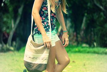 Hola!! Este es un outfit sencillo de fin de semana, con mis shorts degradados en tono aguamarina, corsé de floral print y el bolsito maya que ya habéis visto otras veces por aquí. Este es un look típico mío para esos días en los que no me apetece pensar demasiado en qué ponerme. Muy cásual. Es como mi uniforme-tipo de verano ;).