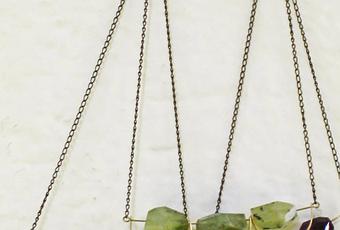 El latón sigue siendo el material principal de las piezas, así como la línea geométrica que se refleja en los diseños y en las piedras que Tatiana ha escogido, alguna de ellas con una geometría muy marcada.