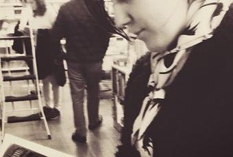 Ojeando libros en la librería Pasajes,donde puedes encontrar libros en diversos idiomas