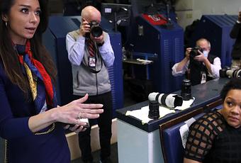Channel Ryan, corresponsal en la Casa Blanca de One America News, le hizo una pregunta al presidente Donald Trump durante una conferencia sobre el virus corona en abril de 2020. DirectTV no renovó el contrato de red.