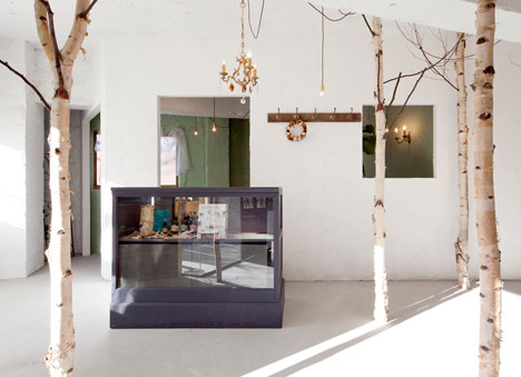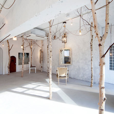 Ryo Isobe es el arquitecto ideario de este proyecto. Su intención era dar la sensación de que los abedules están atrapados en el local complementado con muebles antiguos todo ello rodeado en un ambiente muy neutro entre grises y blancos.