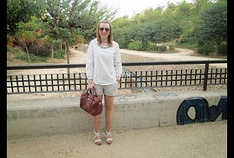 Aprovechando los últimos rayos de sol, podemos sacarle partido a las prendas básicas del verano como son los short beige y a las del otoño como son una camisa blanca.En este caso , una camisa blanca con un toque de pedrería que hace que no le tengamos que añadir un complemento como podría ser un collar porque ya lo lleva incorporado, con unos shorts beiges básicos en cualquier armario.In this case, I have choosen a white shirt with a touch of rhinestones that makes you don't have to add a supplement like maybe a necklace because it is fitted,with basic beige shorts in any closet.