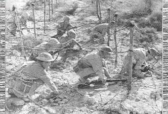 Patrulla británica se desliza por debajo de las alambradas de Tobruk.