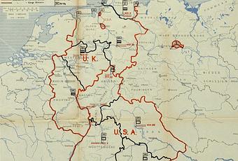 El otro mapa mostraba como Berlín seria repartida a su vez entre las tres potencias, aunque la capital alemana quedaba en territorio controlado por los soviéticos. Los británicos se situaban en la parte Norte y Noroeste, los norteamericanos en la parte Sur y los soviéticos controlarían la parte Nordeste y todo el Este.