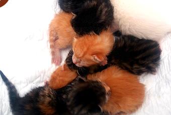 Como la mayoría sabéis cangreyayo tiene una pequeña porción de paraíso, a la que llamamos "el huerto", pues bien, hace años, llegaron unos gatos asilvestrados a los que cangreyayo dio de comer, y que desde entonces, todas las generaciones siguientes se han quedado allí. De hecho, ha llegado a haber 15 gatos, de los que últimamente sólo quedaban dos un macho y una hembra. La hembra estaba preñada y la semana pasada tuvo seis gatitos.