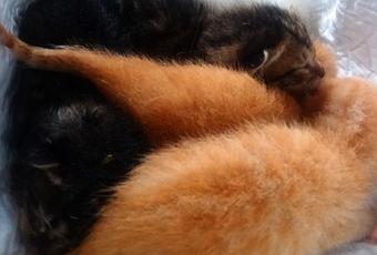 La veterinaria me atendió enseguida, nada más tocarlos puso mala cara, estaban demasiado fríos. Los secó y los puso tapados sobre una manta eléctrica y uno a uno les dio unas gotitas de leche especial para crías de gato. Uno estaba tan tiesito, que la veterinaria en principio los descartó, aunque luego también le dio leche, porque el pobre estaba casi muerto.