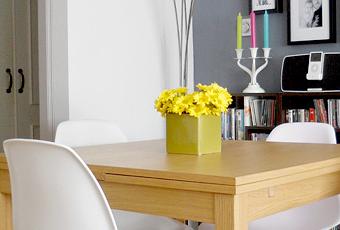 La parte de las sillas fue la más fácil. Un par nos lo regalaron las navidades del pasado año, y el segundo lo conseguimos hace unos meses en una de esas campañas que de tanto en tanto lanza groupalia. Y como muchos me soléis preguntar por marcas y datos sobre la pintura; comentaros que este tono gris está hecho a la carta y corresponde concretamente a la referencia N162 de la marca Blatem. Nos gusta un montón este tono de gris porque tiene diferentes matices en función de la luz que recibe.