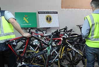 En el momento en el que se produjo la detención se incautaron 14 bicicletas, unas 38 ruedas, 26 manillares, 8 cuadros de carbono y 23 sillines, además de 36 plantillas con el logotipo de ambas marcas, entre todos los componentes sumaban un valor de aproximadamente 120.000 euros-
