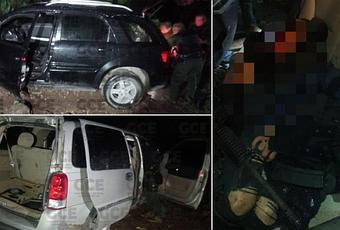 En la escena, se aseguró una camioneta Ford Edge sin placas, equipada con cuatro armas de fuego largas, una corta, cuatro chalecos tácticos, un casco y una bolsa con objetos de varilla. Un segundo vehículo, un Pontiac Torrent negro, fue encontrado en la zona con más equipo táctico y armamento, incluyendo cartuchos de varios calibres y pistolas abastecidas, además de objetos relacionados con actividades delictivas.