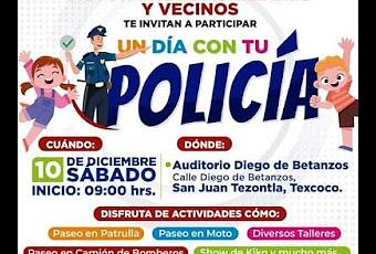 La Dirección de Seguridad Pública y de Movilidad de Texcoco a cargo del comandante Adrián Trápala González realiza de manera constante realiza jornadas de actividades y talleres en las diferentes comunidades texcocanas de la mano de las delegaciones y vecinos a fin de que los texcocanos conozcan a quienes cuidan de la ciudadanía.