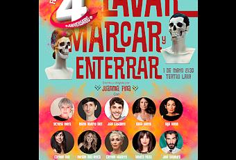 Para que no os asustéis, lo que pasó de verdad es que tuve la enorme suerte de asistir a una función especial de la comedia Lavar, marcar y enterrar. Celebraban su cuarto aniversario en cartel. Y no me extraña en absoluto que lleven tantísimo tiempo porque Juanma Pina ha escrito y puesto en marcha un texto divertido, entretenido e hilarante, con un gran elenco y música en directo. ¿Qué más se puede pedir?