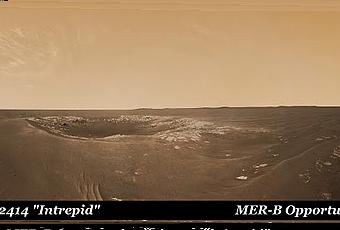 En sol 2412 (6 de noviembre) Opportunity comenzó su aproximación al cráter Intrepid de 20 metros de diámetro. El vehículo pasará unos días tomando imágenes del cráter antes de retomar la marcha.