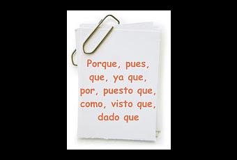 En el español escrito, se utilizan como nexos algunas locuciones conjuntivas: debido a que, a causa de que, gracias a que, por culpa de.