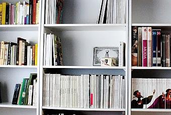 Si bien en casa tenemos un estudio en la planta alta con varias bibliotecas pobladas de textos académicos, queríamos separar algunos libros -sobre todo literatura- y agrupar mis revistas y material de moda en un solo lugar. Así que este nuevo mueble me brinda la posibilidad de tener siempre a mano lo que necesito para mis clases, el blog y las actividades relacionadas con estos temas.