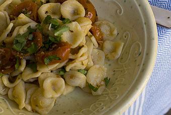 Los orecchiette (orejitas) son un tipo de pasta típica de la zona de Apulia, donde se puede ver a las mujeres en las calles, con grades secadores de pasta, preparandolos sobre tablas de madera, u espectáculo del que todos los turistas se hacen eco y compran a modo de souvenirs, llevando de recuerdo deliciosa pasta casera. Se dice que este tipo de pasta se originó el la provenza, y su forma facilitaba el secado para poder almacenarlos en épocas de escasez de alimentos. Ha varios tamaños, es típico otro bastante más grande que pronto prepararé para subir una receta con ellos.