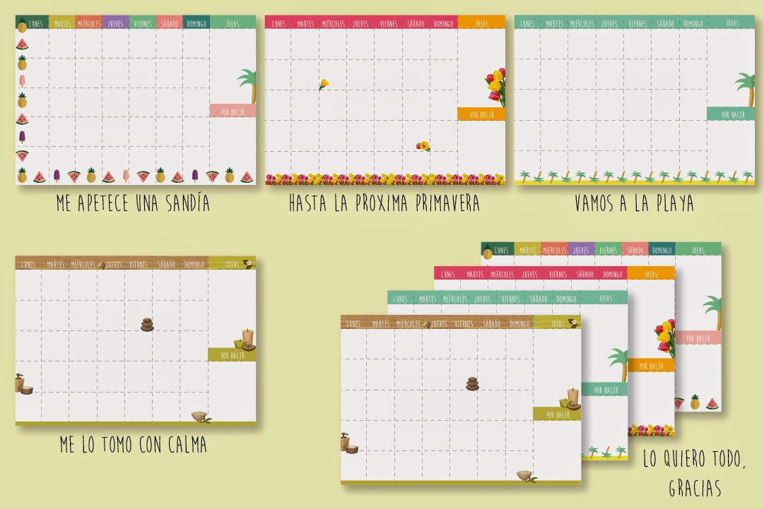 Son 5 diseños y lo único que tienes que hacer para conseguirlo es seguirnos por gfc o bloglovin y dejarnos un comentario o enviarnos un email diciéndonos que opción quieres :). Las chicas que ya nos siguen también pueden conseguirlo dejándonos un comentario o un email. Las opciones son: Me apetece una sandía, Hasta la próxima primavera, Vamos a la playa, Me lo tomo con calma y Lo quiero todo, gracias xP