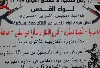 Liwa al-Quds es una organización terrorista afín al criminal régimen antisionista de Assad que fue creada en el 2013 por el ingeniero ‘Muhammad al-Said’ en dos campos de refugiados palestinos de Alepo, lugar donde han combatido bajo la bandera siria, tambien han realizado acciones en el Golam sirio.