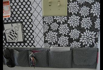Un organizador de carteras justo al lado de la puerta de mi cuarto
