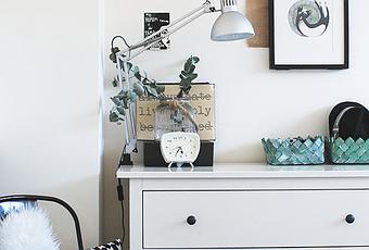 Lo cierto es que ya teníamos todos los muebles, y la mayoría son de IKEA. Para darles personalidad y hacerlo nuestro, pensamos algunos DIY y brochazo por aquí y por allá. Pintamos un cabecero en color mint, que me parece perfecto para el tiempo que viene, reorganizamos la DECO sobre la cómoda y pusimos en orden los interiores para dejar espacio para nuestros visitantes. Luego, creamos espacio de almacenaje: el archiconocido burro (tengo al menos 5 entre las dos casas y creo que es el invento del siglo) para colgar; y una estructura de cajas (como una segunda cómoda) para guardar cosas fuera de temporada.