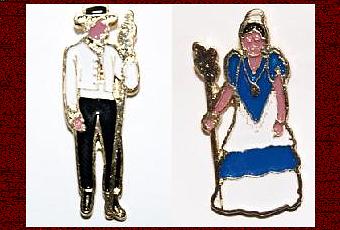 Estos pins metálicos con la imagen de un peregrino y una peregrina no tienen desperdicio. Son ideales para darlos a los invitados de una boda rociera: para ellas la mujer con la bata rociera y para ellos el romero vestido de corto. ¿No son simpatiquísimos?. Su precio es de 0,95 € la unidad y el pedido mínimo son 50 undsNota: la foto no les hace justicia : )