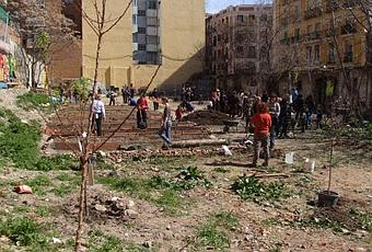 Mural junto a Sakristan en el huerto urbano de Lavapiés. El solar (ahora legalmente plaza pública) de la Calle del Doctor Fourquet que se está convirtiendo en un práctico y espléndido jardín.