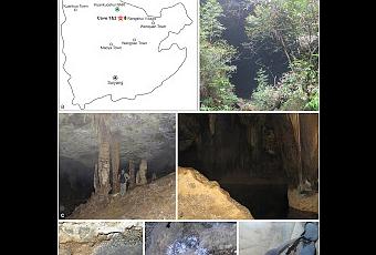 FIGURE 1. Visited caves. (a) Location of caves in Suiyang, Guizhou. (b) Entrance to Cave 1. (c) Stalactite. (d) Pool at the end of Cave 1. (e) Sampled rocks. (f) Bat guano colonized by fungal mycelia. (g) Pellucid tadpole (Zhang et al., 2017). (Extraído del trabajo anteriormente mencionado)El trabajo se puede leer completo en inglés en el siguiente enlace a la revista: