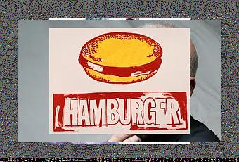 No solo como alimento han sido utilizadas las hamburguesas. En el arte las hamburguesas tienenrepresentación. En el pop art incluye a la hamburguesa como elemento artístico,en obras de Andy Warhol -Hamburger-(la que ilustra este articulo) y Claes Oldenburg -FloorBurger- (segunda imagen) entre otros.