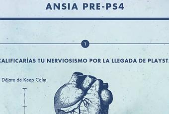 Si queremos conocer cuál es nuestro nivel de estrés por la llegada de la consola PlayStation 4, no hay mejor solución que realizar el test que nos proponen desde ansiapreps4.com.Desde esta web, siempre de forma irónica, nos someteremos a una serie de preguntas donde se irá midiendo nuestras ganas y nivel de impaciencia que nos produce el querer tener en nuestras manos la nueva consola de Sony.
