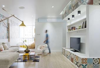 Para el interiorismo, realizado por el estudio de arquitectura vietnamita Landmak, se han escogido varios elementos, además de la baldosa hidráulica, que se repiten en la vivienda y nos ayudan a dar el aporte de color, uno son las originales lámparas con brazo de madera y pantalla de color amarillo situadas en la zona de estar y el comedor y el otro son las Plastic Chair de los Eames en blanco y amarillo.