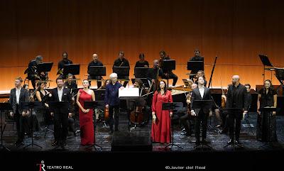 La interpretación en el Teatro Real contó con un reparto vocal equilibrado y experto en este repertorio, bajo la tutela de un entregadísimo e hiperactivo Giovanni Antonini con sus huestes de Il Giardino Armonico -menudos Vivaldis por este conjunto me he tirado yo escuchando, cuyas Cuatro estaciones no me quitaba yo de la cabeza por lo enérgicas y trepidantes-.