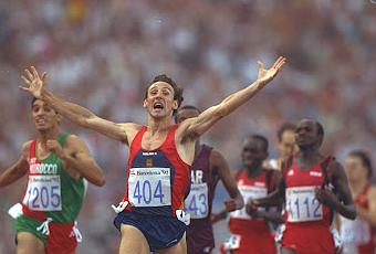Sin duda una de las fotos históricas del deporte español, todo un ejemplo de superación y un hecho que hasta entonces no era más que una ilusión. Fermín cacho consiguió en las olimpiadas de Barcelona 92 el oro en la prueba reina del atletismo que son los 1500 metros. Sin ser el favorito ni mucho menos Fermín Cacho supo adecuar la carrera a sus características e imponerse a los grandes del momento con un Estadio Olímpico de Montjuic lleno hasta la bandera y entregado al corredor español que vio como era inalcanzable en los 200 metros finales en lo que su sprint final fue demoledor y fuera del alcance de cualquiera de sus competidores. Fermín cacho se convirtió 4 años después con una plata en Atlanta 96 en el único atleta español con dos medallas olímpicas.