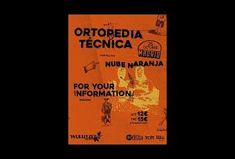 Ortopedia Técnica nos presenta su sonido desde Castellón, un directo con el que disfrutar y es que la banda ya ha demostrado en cada lanzamiento su calidad en el estudio, los conciertos tienen ese toque potente que se nota en el disco y no es para menos. For Your Information es un proyecto de Madrid que tienen un sonido post punk y a la vez la esencia del rock más interesante, un nuevo directo en casa para mostrarnos sus canciones. Nube Naranja es un proyecto que surge en un mundo post-pandémico, como resultado de la unión de músicos con trayectorias en diversas formaciones anteriores y que tiene mucho que mostrarnos. #Datos:25/1021:00Wurlitzer BallroomEntrada anticipada desde 12 euros / Taquilla 15 euros