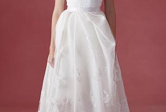 La nueva línea de trajes de novia viste a las mujeres con palabra de honor, manga corta o tirantes con vestidos de novia estilo lencero.