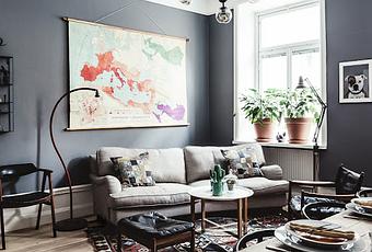 Reconozco que tengo debilidad por los espacios claros, muy claros, tan claros que el 100% white es mi fetiche, pero últimamente me llaman la atención otro estilo bastante más masculino. Navegando por diferentes espacios de venta de vivienda en Estocolmo, de repente he dado con este apartamento que os traigo hoy.