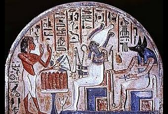 Osiris y AnubisEn el antiguo Egipto, Osiris era el soberano del reino de los muertos, y por eso vivía en el mundo subterráneo. Aquí aparece (en el centro) con Anubis, otro dios de los muertos, al que se representaba con cabeza de chacal.